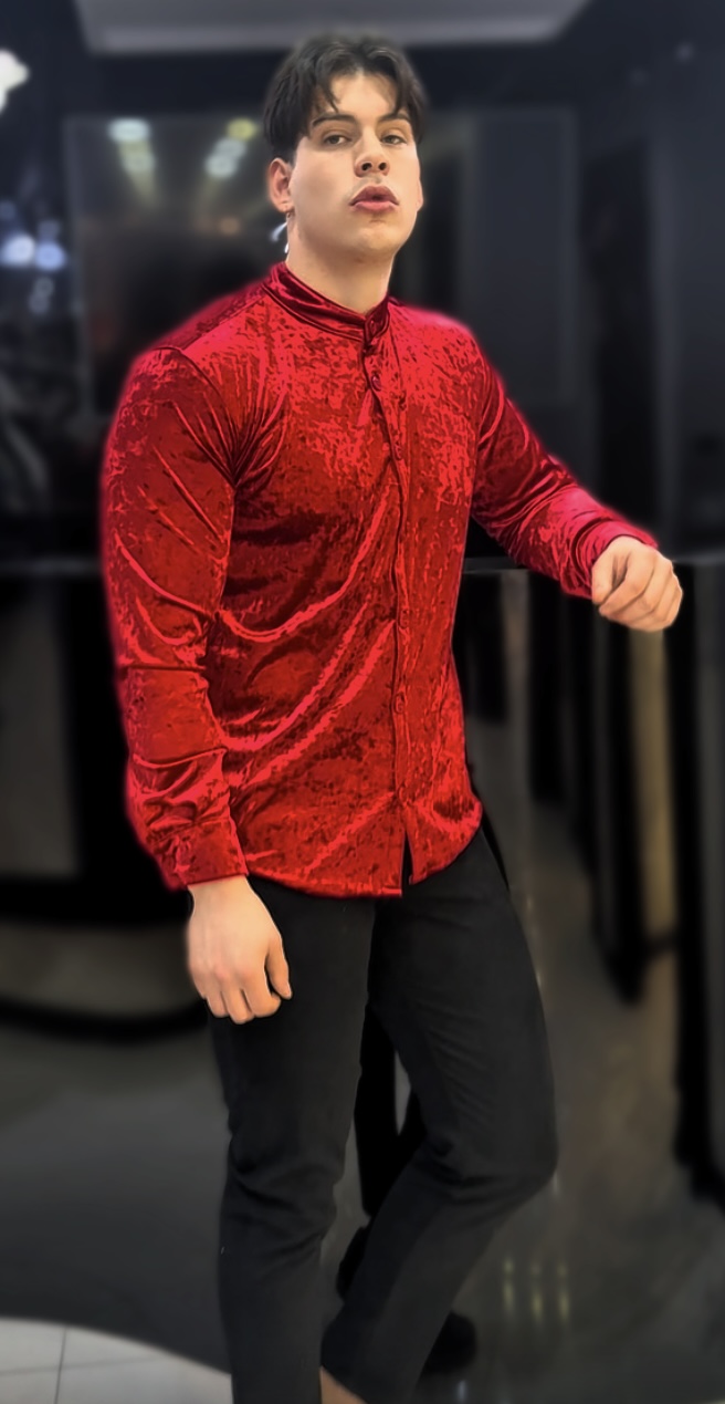Camisa Praga Manga Larga terciopelo rojo cod32288