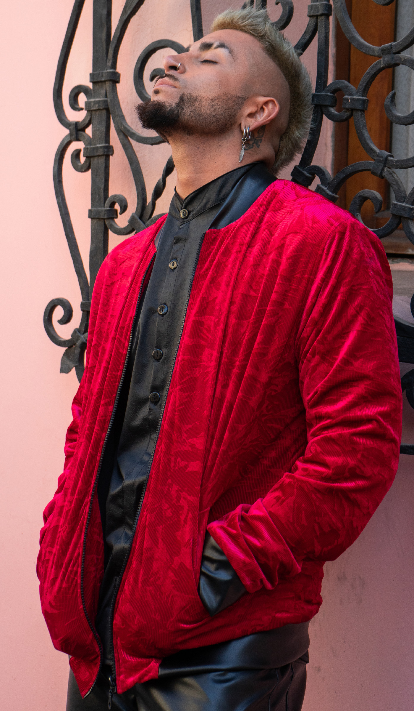 confeccionada en ecocuero y terciopelo con forro interno de polar, manga larga, posee forro interior de polar, bolsillos delanteros.