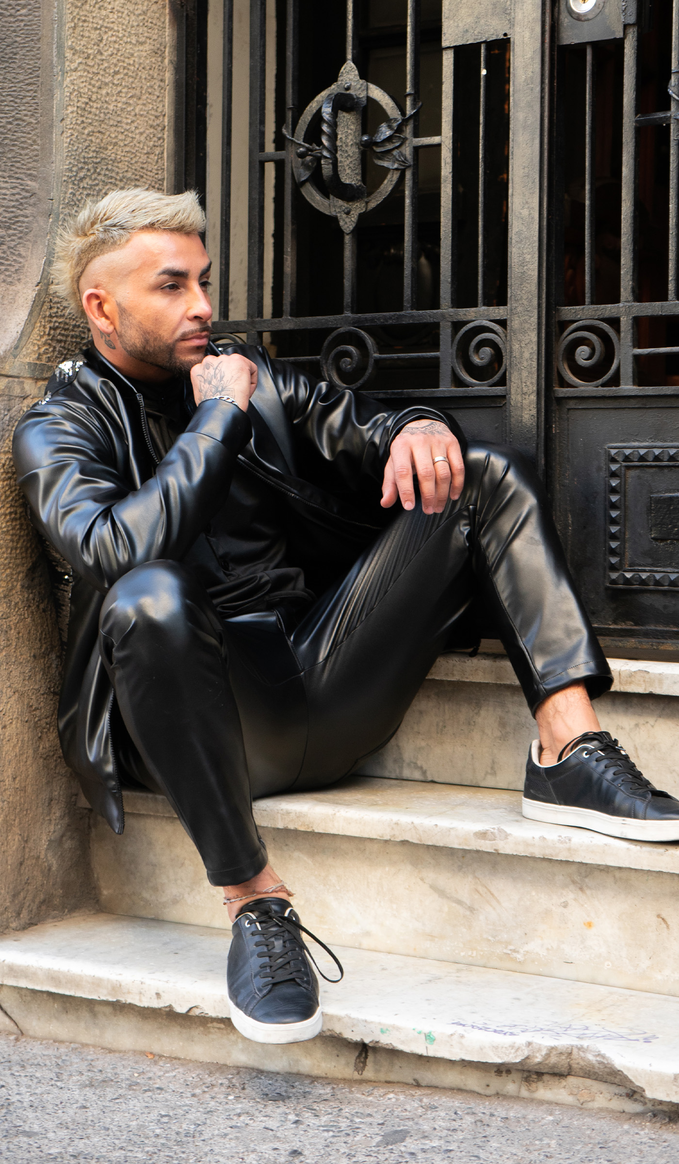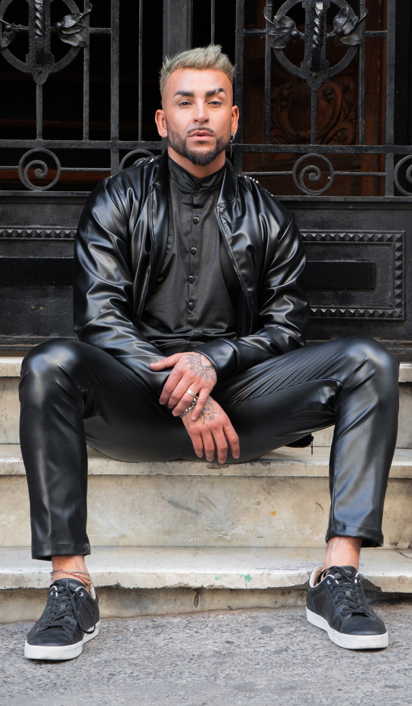 confeccionada en ecocuero con aplicación en espalda de brillos, manga larga, posee forro interior de polar, bolsillos delanteros.
