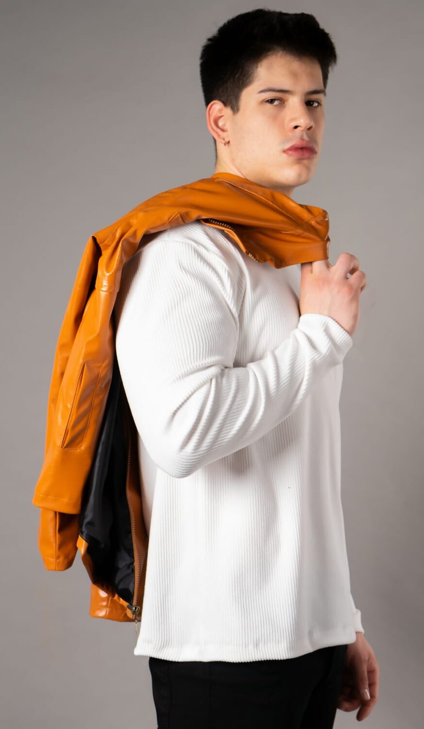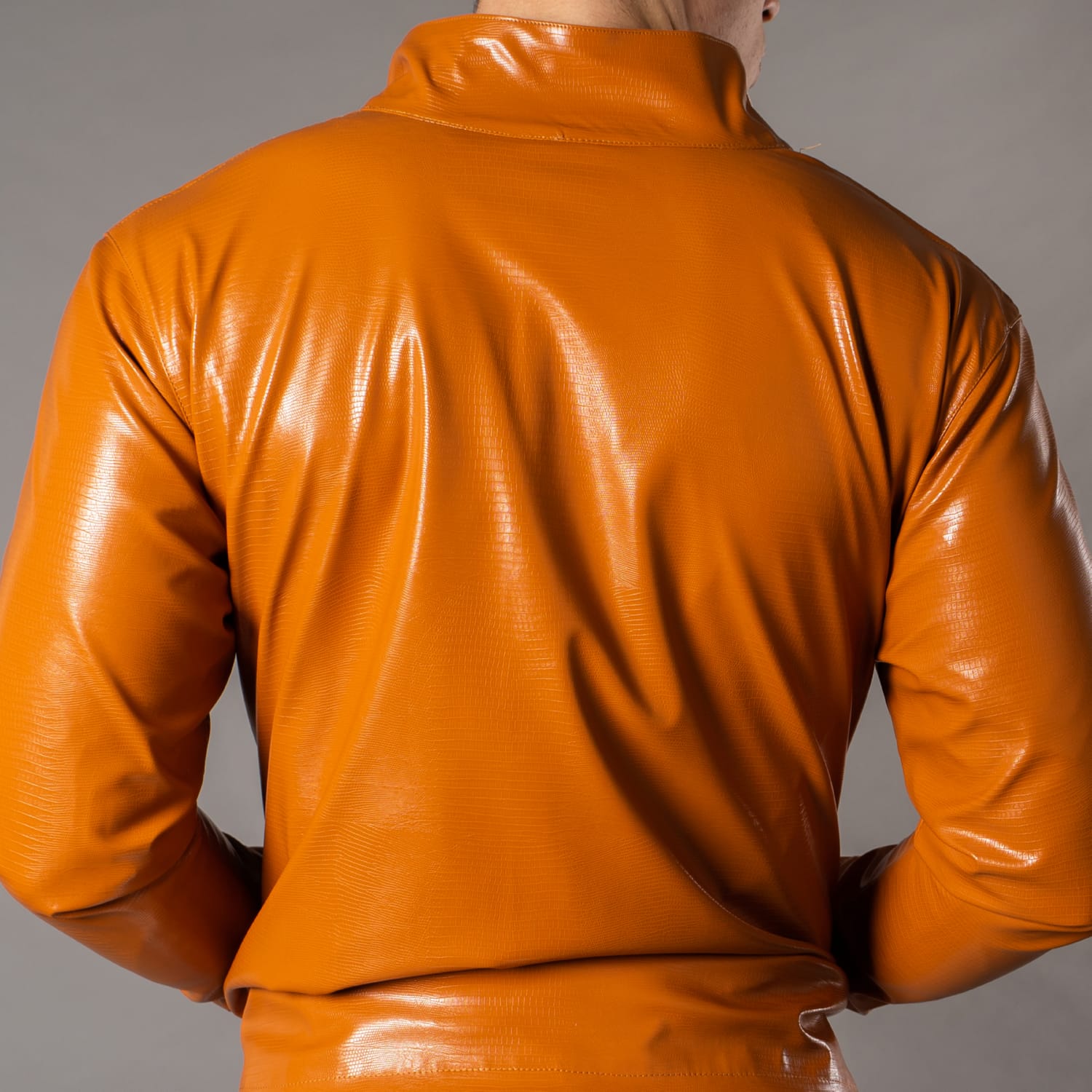 Chaqueta confeccionada en tela ecocuero manga larga, posee forro interior de polar, bolsillos delanteros.
